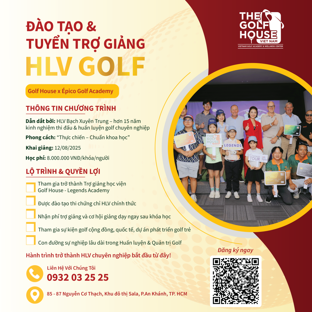 Tham gia chương trình Đào tạo & Tuyển Trợ giảng HLV Golf do The Golf House phối hợp cùng Épico Golf Academy tổ chức. Chỉ 10 suất duy nhất, học cùng HLV trưởng Bạch Xuyên Trung tại học viện Golf House – bước khởi nghiệp để trở thành Huấn luyện viên Golf chuyên nghiệp